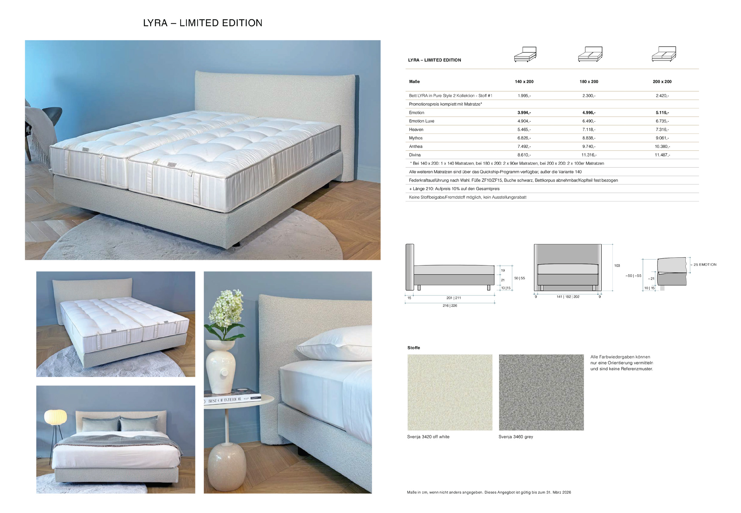 Sichern Sie sich bis zum 31.12.2025 das limitierte Boxspringbett "LYRA" der Marke Schramm zum Bestpreis bei uns im Bettenhaus Schmitt Berlin. Wahlweise erhalten Sie das "LYRA" Bett mit der hervorragenden Matratze "Emotion".